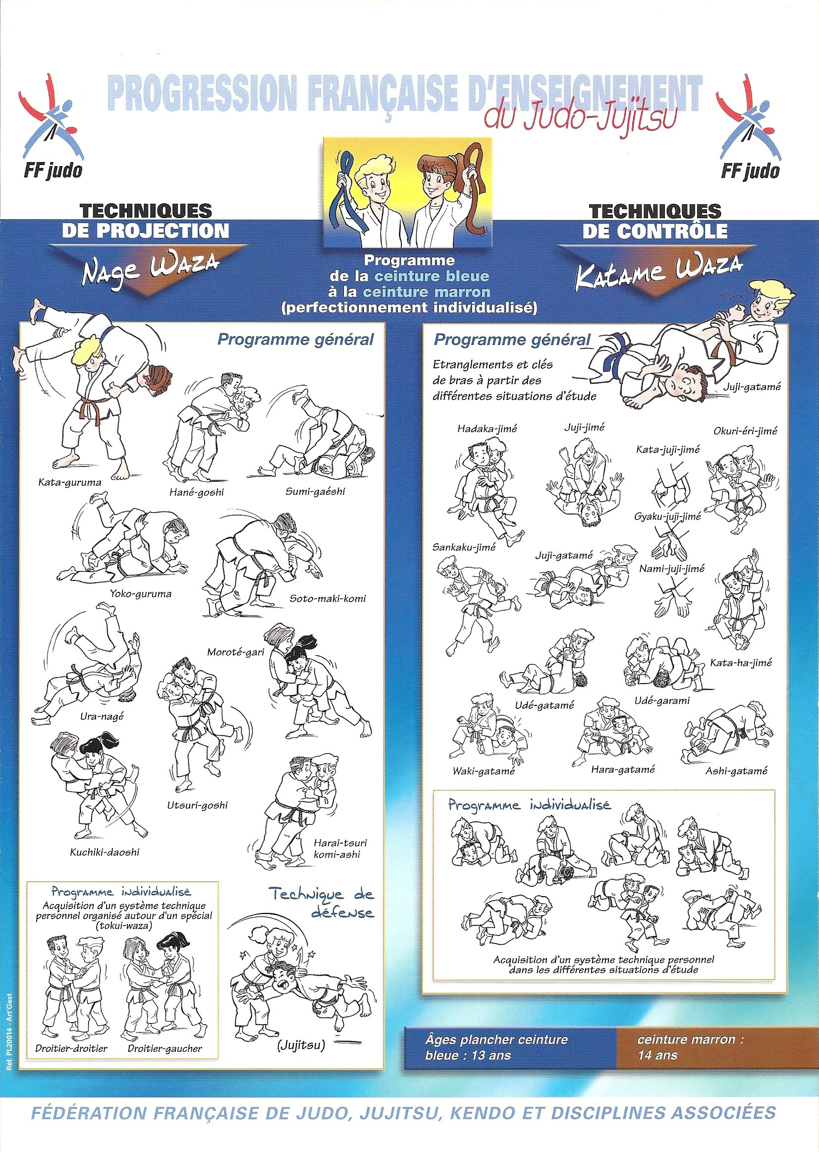 Planche de progression de la FFJUDO pour les judoka de bleu à marron