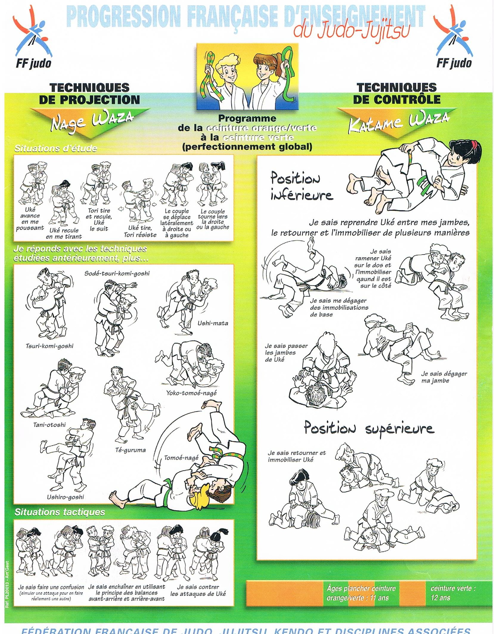 Planche de progression de la FFJUDO pour les judoka de orange à verte